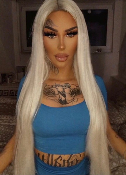 Haare:blond, rückenlang, glatt
