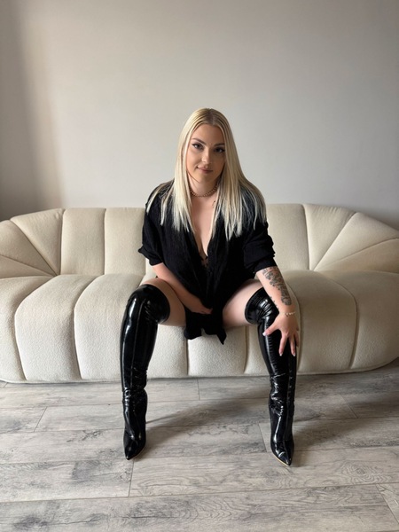 eine straffe Oberweite und lange blonde Haare,