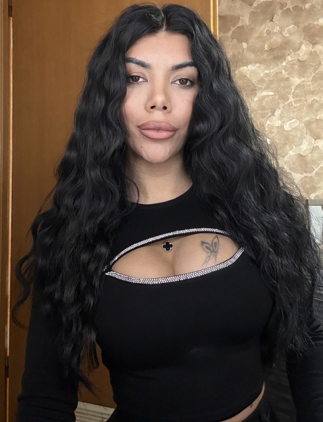 Haare:schwarz, rückenlang, wellig