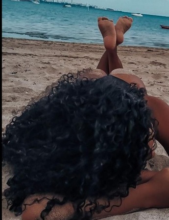 Haare:dunkelbraun, schulterlang, gelockt