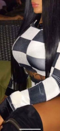 Haare:schwarz, rückenlang, glatt