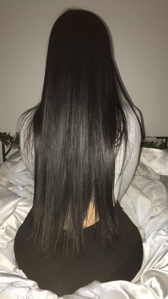 Haare:schwarz, rückenlang, glatt
