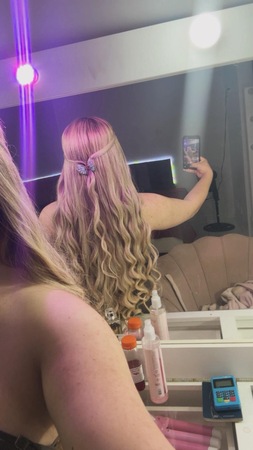 Haare:echt rot, rückenlang, glatt